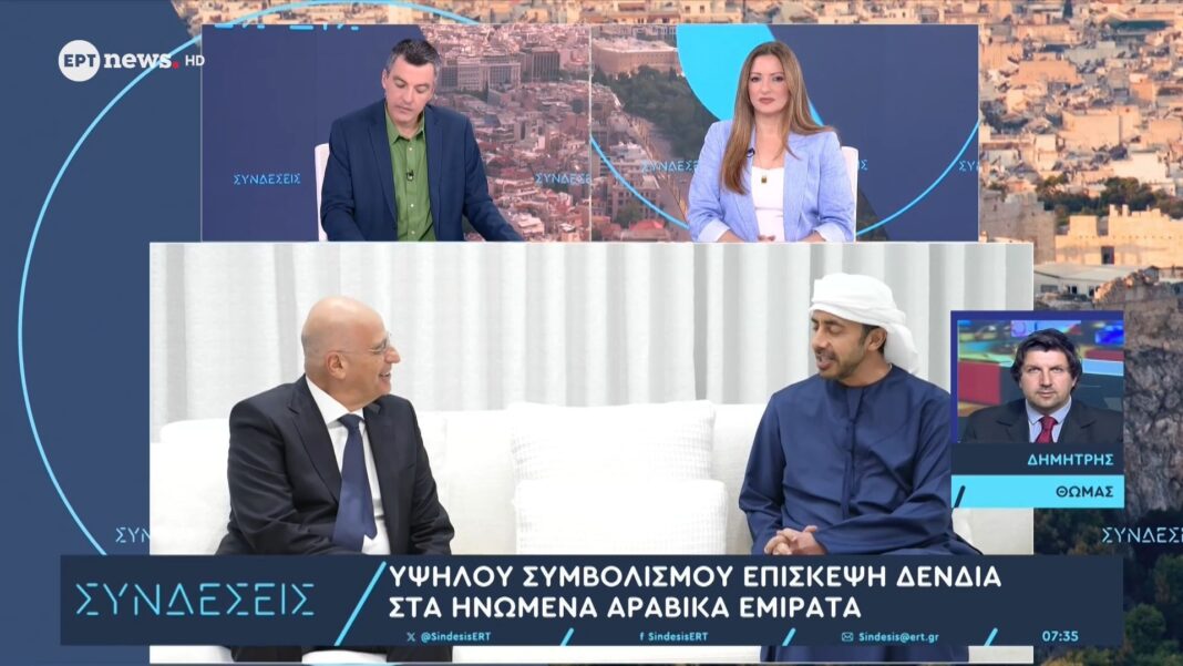 Στα Ηνωμένα Αραβικά Εμιράτα, ο Υπουργός Εθνικής Άμυνας Νίκος Δένδιας είχε σημαντικές συναντήσεις με κορυφαίους αξιωματούχους της χώρας. Στο Στρατιωτικό Αεροδρόμιο Al Ain, τον υποδέχθηκε ο Υπουργός Επικρατείας για Αμυντικές Υποθέσεις, ενώ συζήτησαν τις πρόσφατες εξελίξεις και την ασφάλεια στην περιοχή.