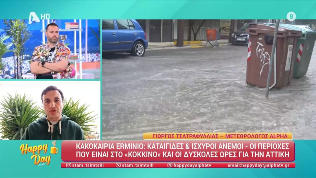 Η κακοκαιρία Erminio πλήττει τη χώρα με ισχυρές καταιγίδες και ανέμους, προκαλώντας ανησυχία στις αρχές και στους πολίτες. Οι περιοχές που βρίσκονται στο “κόκκινο” περιλαμβάνουν την Αττική, όπου αναμένονται οι δυσκολότερες συνθήκες τις επόμενες ώρες.