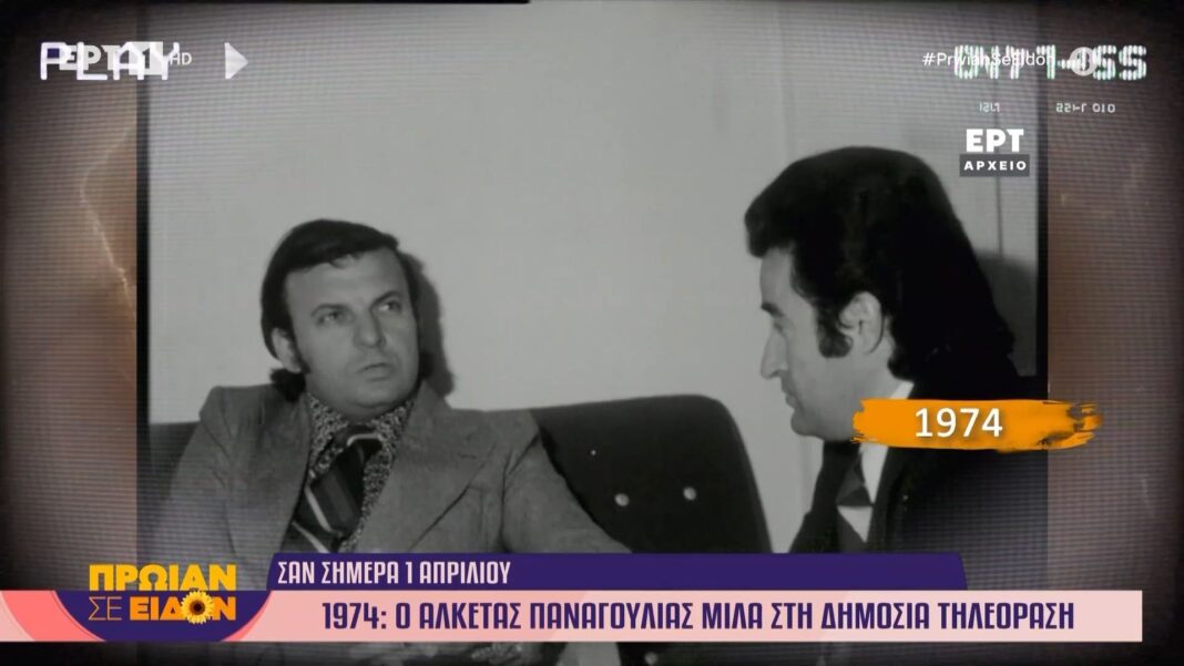 Στις 01 Απριλίου 1974, ο Αλκέτας Παναγούλιας παραχώρησε συνέντευξη στη δημόσια τηλεόραση, αναφερόμενος σε κρίσιμα ζητήματα της εποχής. Η ομιλία του εστίασε στις πολιτικές εξελίξεις και τις προκλήσεις που αντιμετώπιζε η χώρα, προσφέροντας μια μοναδική οπτική για την κατάσταση της ελληνικής κοινωνίας.