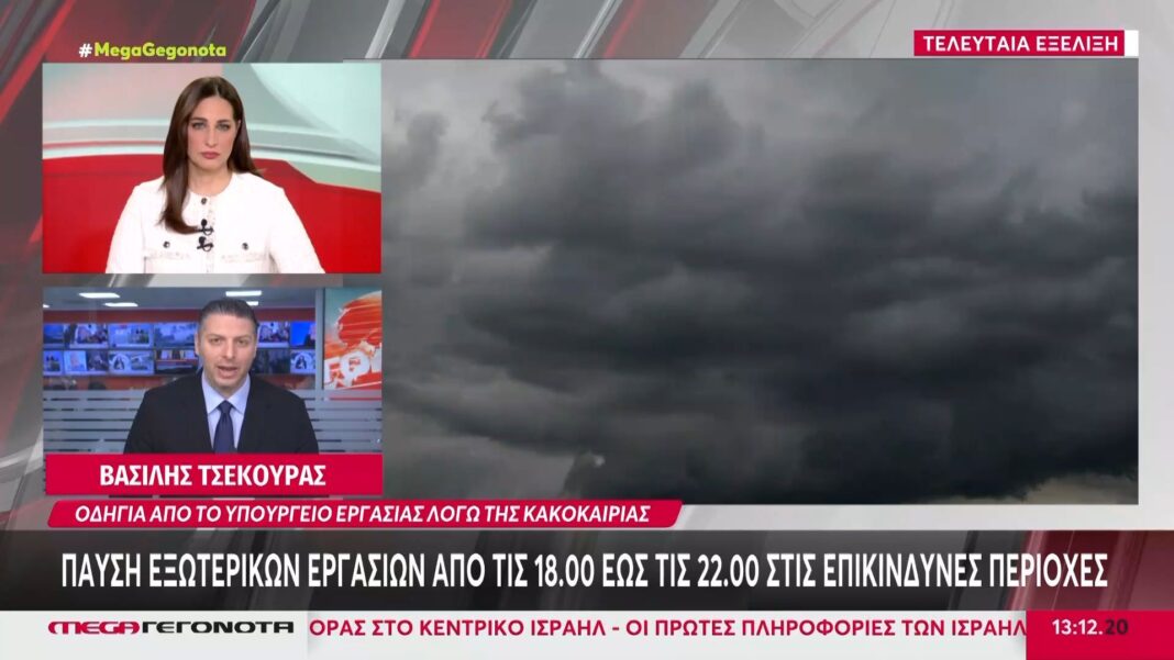 Το Υπουργείο Εργασίας αναστέλλει εξωτερικές εργασίες από 18.00 έως 22.00 για ασφάλεια εργαζομένων λόγω κακοκαιρίας σε επιλεγμένες περιοχές.
