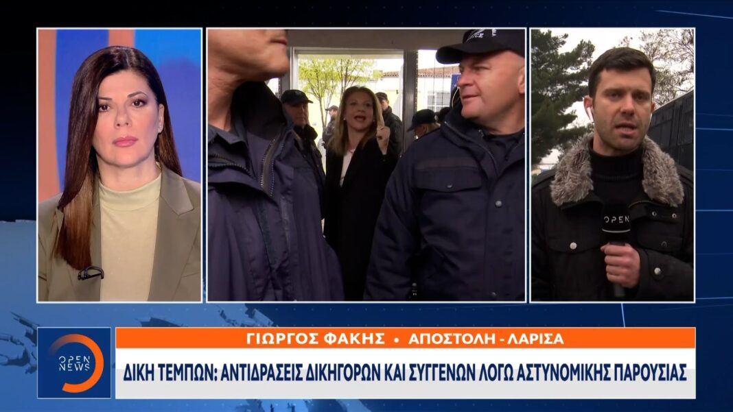 Η δίκη για την υπόθεση των Τεμπών έχει προκαλέσει έντονες αντιδράσεις από δικηγόρους και συγγενείς των θυμάτων, λόγω της αστυνομικής παρουσίας και των περιορισμών που έχουν επιβληθεί. Οι κάμερες απαγορεύονται ακόμη και στον προαύλιο χώρο, ενώ η είσοδος επιτρέπεται μόνο σε δικηγόρους και σε έναν συγγενή ανά οικογένεια.