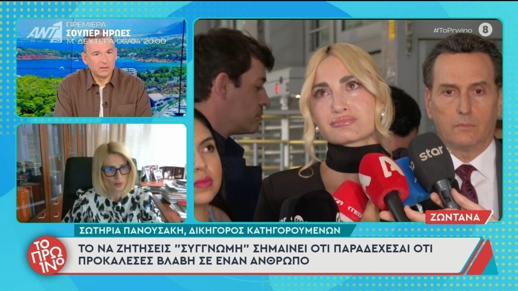 Η δικηγόρος Σωτηρία Πανουσάκη μιλάει για την υπόθεση που έχει προκαλέσει έντονο ενδιαφέρον στην κοινή γνώμη. Τονίζει τη σημασία της συγγνώμης, υπογραμμίζοντας ότι αυτή υποδηλώνει παραδοχή ευθύνης για την πρόκληση βλάβης σε έναν συνάνθρωπο.