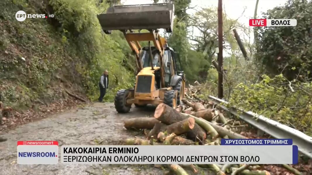 Η κακοκαιρία που πλήττει τον Βόλο έχει προκαλέσει σοβαρές ζημιές στην περιοχή, με ολόκληρους κορμούς δέντρων να ξεριζώνονται από τις ισχυρές ανέμους. Οι αρχές έχουν κληθεί να επέμβουν, καθώς η κατάσταση απειλεί την ασφάλεια των πολιτών και την υποδομή της πόλης.