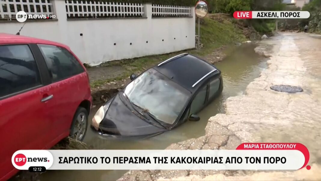 Η κακοκαιρία που έπληξε τον Πόρο άφησε πίσω της σοβαρές καταστροφές, με πλημμυρισμένα δρόμους και κατεστραμμένα σπίτια. Οι τοπικές αρχές προχώρησαν σε εκκενώσεις περιοχών και κήρυξαν κατάσταση έκτακτης ανάγκης, προκειμένου να προστατεύσουν τους κατοίκους.