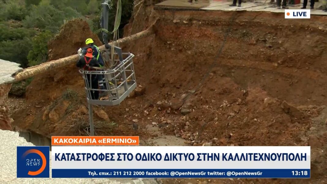 Κακοκαιρία «Erminio»: Καταστροφές στο οδικό δίκτυο στην Καλλιτεχνούπολη
