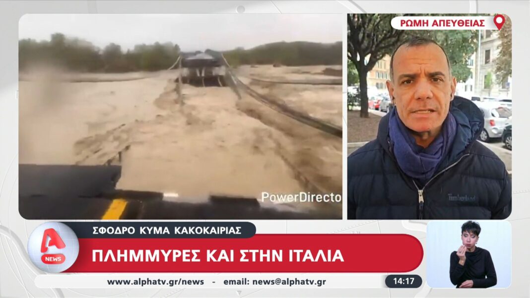Σφοδρές καταιγίδες πλήττουν την Ιταλία, προκαλώντας σοβαρές πλημμύρες σε πολλές περιοχές. Οι αρχές έχουν προειδοποιήσει τους πολίτες να παραμείνουν σε επιφυλακή, καθώς οι βροχοπτώσεις αναμένονται να συνεχιστούν.