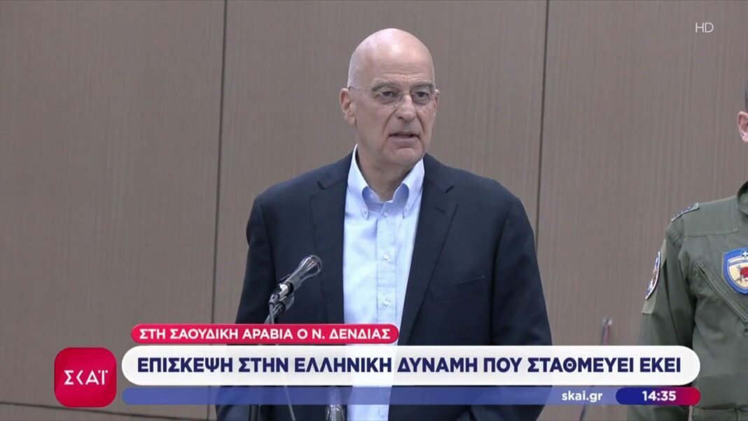 Ο Υπουργός Εξωτερικών, Νίκος Δένδιας, πραγματοποίησε επίσκεψη στην ελληνική στρατιωτική δύναμη που σταθμεύει στη Σαουδική Αραβία. Σκοπός της επίσκεψης είναι η ενίσχυση των διμερών σχέσεων και η αξιολόγηση της κατάστασης στην περιοχή, καθώς και η υποστήριξη των ελληνικών δυνάμεων που συμμετέχουν σε αποστολές ασφάλειας.