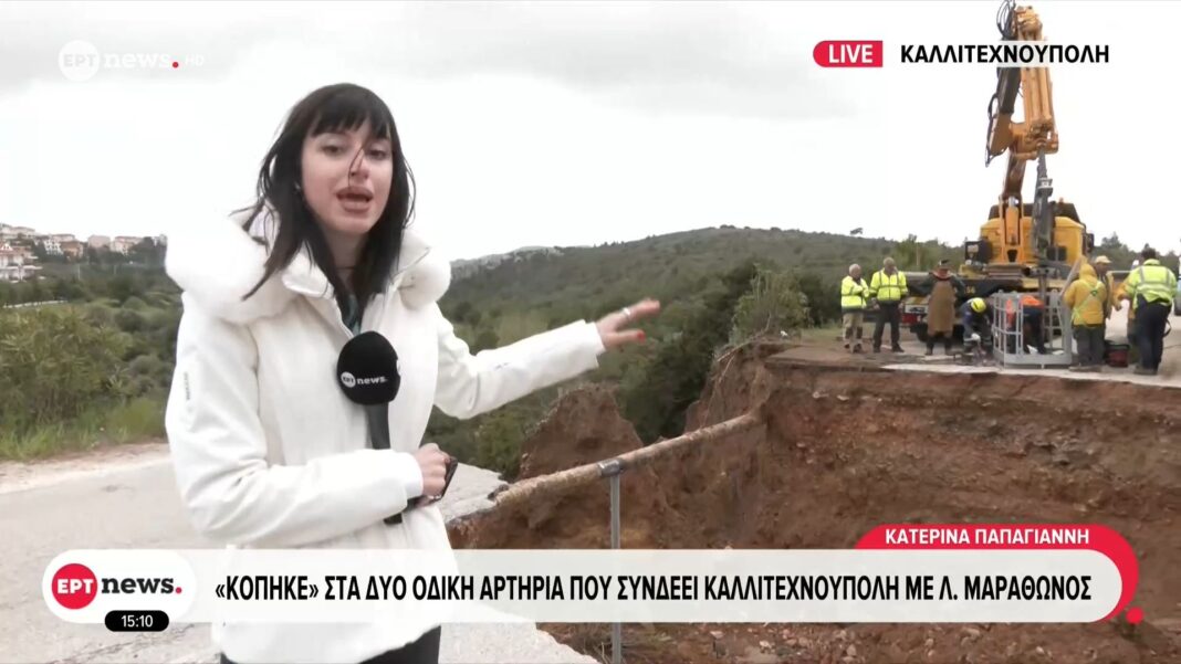 Σοβαρές ζημιές σημειώθηκαν στην οδική αρτηρία που συνδέει την Καλλιτεχνούπολη με τη Λεωφόρο Μαραθώνος, καθώς ο δρόμος «κόπηκε» στα δύο από ισχυρές καιρικές συνθήκες. Η κυκλοφορία στην περιοχή έχει διακοπεί, με τις αρχές να προειδοποιούν τους οδηγούς να αποφεύγουν την πρόσβαση.