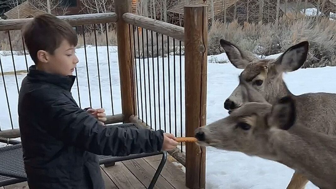 Στις 13 Μαρτίου, δύο ελάφια πλησίασαν ένα μικρό αγόρι σε περιοχή του Τζάκσον, στο Ουαϊόμινγκ. Η σκηνή απαθανάτισε τη γλυκύτητα της επαφής μεταξύ ανθρώπων και άγριας ζωής, καθώς τα ελάφια δέχτηκαν να φάνε σνακ από το χέρι του.