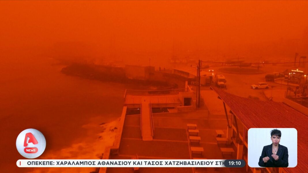 Στις Κυκλάδες και την Κρήτη, το φαινόμενο της αφρικανικής σκόνης δημιούργησε ένα εντυπωσιακό αλλά και ανησυχητικό σκηνικό, με τον ουρανό να αποκτά κόκκινες αποχρώσεις. Οι επιστήμονες προειδοποιούν για τις επιπτώσεις της σκόνης στην υγεία και το περιβάλλον, καθώς οι συγκεντρώσεις σκόνης αναμένεται να παραμείνουν υψηλές τις επόμενες ημέρες.