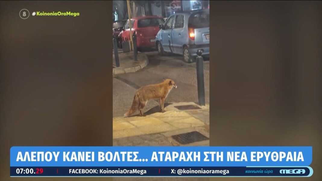 Μια αλεπού εντοπίστηκε να περιπλανιέται στους δρόμους της Νέας Ερυθραίας, προκαλώντας την προσοχή των κατοίκων. Το ζώο εμφανίστηκε ιδιαίτερα ήρεμο, περιφέροντας ανάμεσα σε αυτοκίνητα και περαστικούς, χωρίς να φαίνεται να ανησυχεί για την παρουσία τους.
