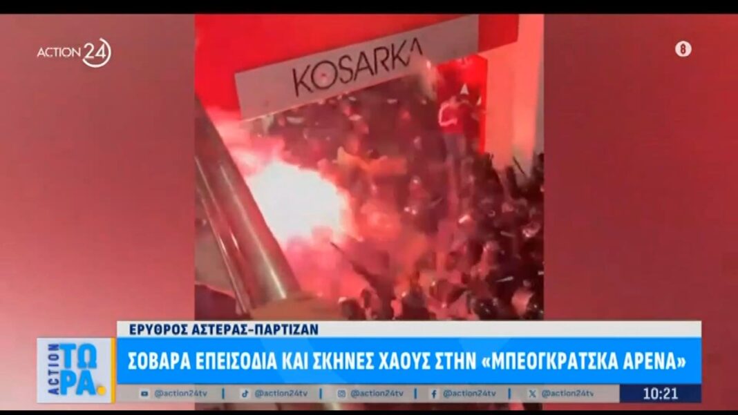 Σοβαρά επεισόδια ξέσπασαν στην Μπεογκράτσκα Αρένα κατά τη διάρκεια του ντέρμπι Ερυθρού Αστέρα και Παρτιζάν, με εκατοντάδες φιλάθλους να εμπλέκονται σε συγκρούσεις. Οι αστυνομικές δυνάμεις επιχείρησαν να αποκαταστήσουν την τάξη, αλλά οι σκηνές χάους προκάλεσαν φόβο και αναστάτωση στους παρευρισκόμενους.