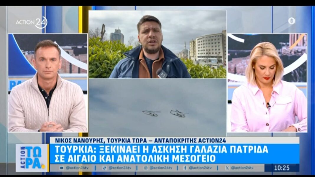 Η Τουρκία έχει ξεκινήσει τη στρατιωτική άσκηση “γαλάζια πατρίδα” στην περιοχή του Αιγαίου και της ανατολικής Μεσογείου. Η άσκηση αυτή περιλαμβάνει ναυτικές και αεροπορικές δραστηριότητες, με τη συμμετοχή πολλών στρατιωτικών μονάδων, και αναμένεται να διαρκέσει αρκετές ημέρες.