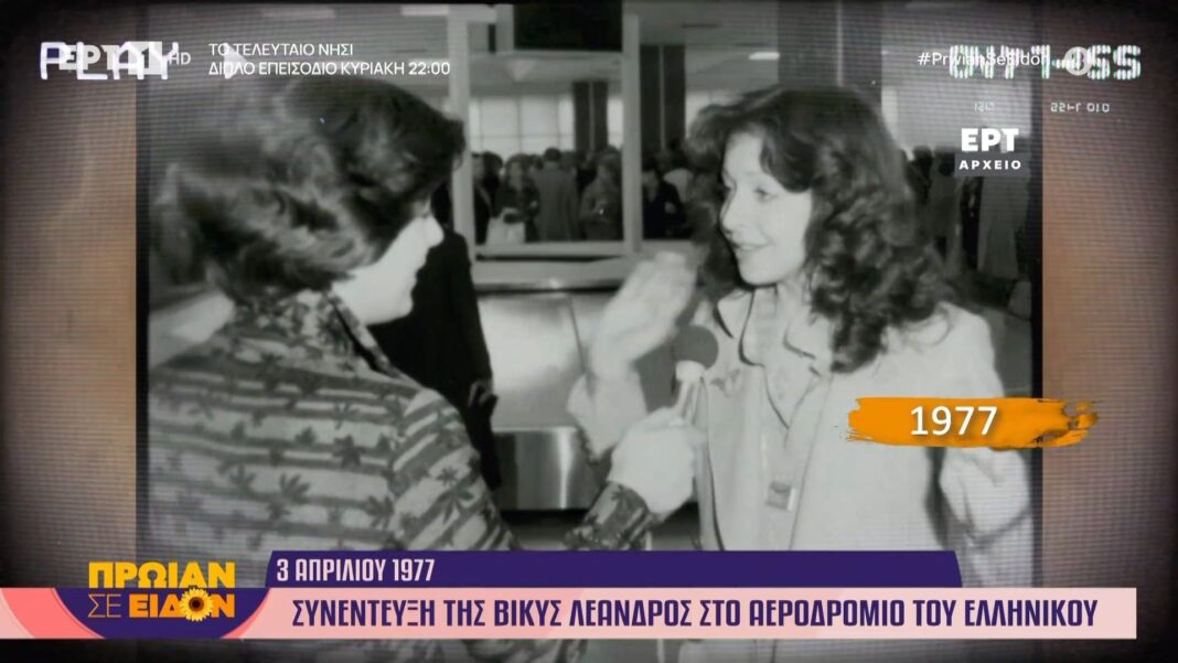 Στις 3 Απριλίου 1977, η Βίκυ Λέανδρος, μια από τις πιο εμβληματικές φωνές της ελληνικής μουσικής, παρέδωσε μια συνέντευξη στο αεροδρόμιο του Ελληνικού. Η συναρπαστική της παρουσία και οι δηλώσεις της για την καριέρα και τη ζωή της, προκάλεσαν μεγάλο ενδιαφέρον τόσο στους δημοσιογράφους όσο και στο κοινό.