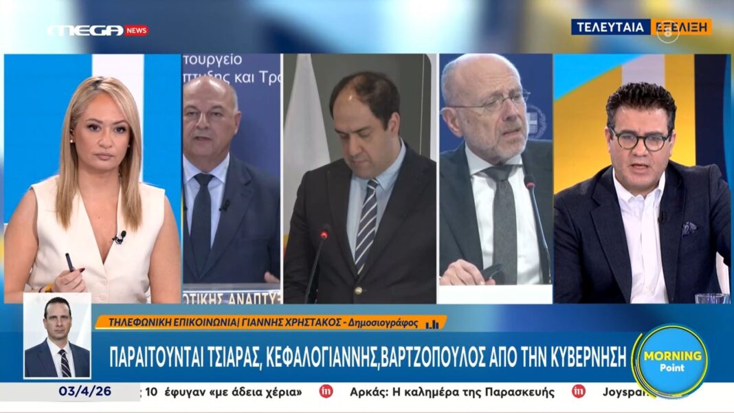 Τρεις κορυφαίοι υπουργοί της κυβέρνησης ανακοίνωσαν την παραίτησή τους, προκαλώντας αναστάτωση στη Νέα Δημοκρατία. Οι Τσιάρας, Κεφαλογιάννης και Βαρτζόπουλος αποχωρούν από τις θέσεις τους, γεγονός που προαναγγέλλει ανασχηματισμό και πιθανές αλλαγές στη δομή της κυβέρνησης.