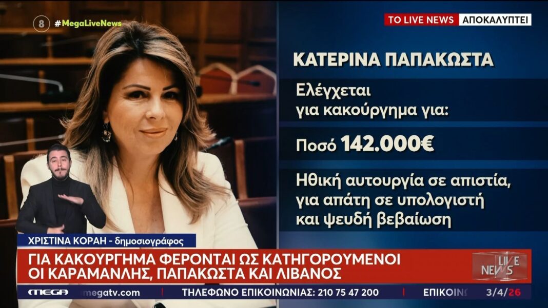 Η υπόθεση της Κ. Παπακώστα, με κατηγορίες κακουργήματος, εμπλέκει και τους Καραμανλή, Λιβανό, αυξάνοντας τις πολιτικές επιπτώσεις.