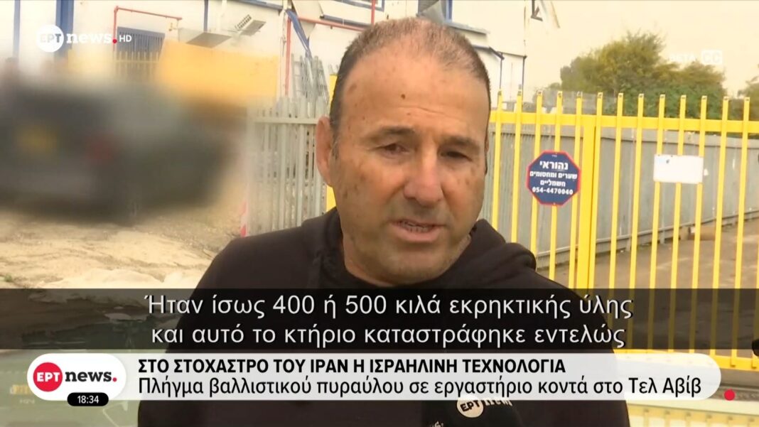 Ένας βαλλιστικός πύραυλος χτύπησε εργαστήριο κοντά στο Τελ Αβίβ, προκαλώντας ανησυχία για την ασφάλεια της ισραηλινής τεχνολογίας. Το Ιράν φαίνεται να κλιμακώνει τις επιθέσεις του εναντίον στρατηγικών υποδομών του Ισραήλ, με στόχο την υπονόμευση των αμυντικών του ικανοτήτων.