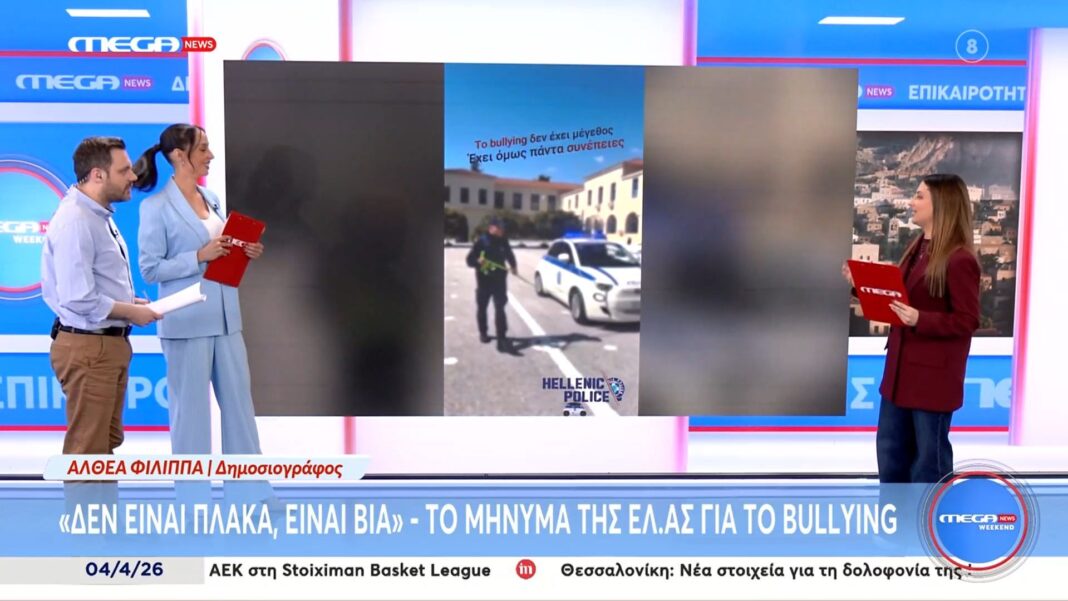 Η Ελληνική Αστυνομία αναδεικνύει τη σοβαρότητα του φαινομένου του bullying μέσω μιας νέας καμπάνιας ενημέρωσης. Το μήνυμα τονίζει ότι η βία, είτε σωματική είτε ψυχολογική, δεν πρέπει να υποτιμάται και απαιτεί άμεση παρέμβαση από την κοινωνία.