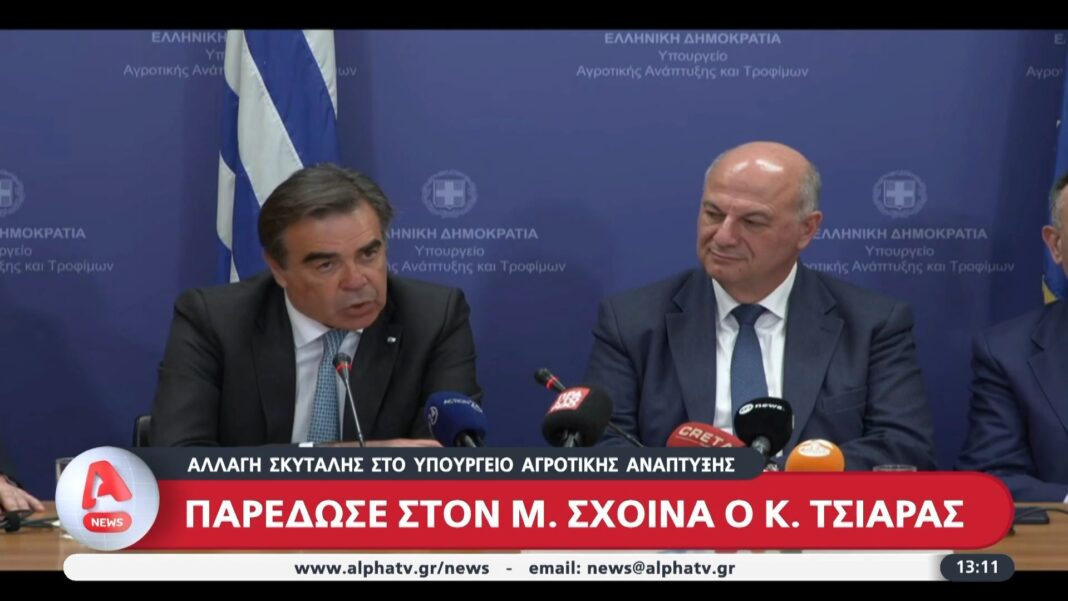 Αλλαγή σκυτάλης στο Υπουργείο Αγροτικής ανάπτυξης: Παρέδωσε στον Μ. Σχοινά ο Κ. Τσιάρας