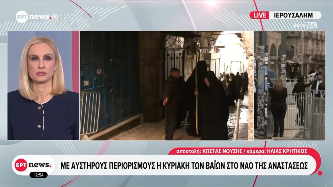 Οι αρχές επέβαλαν περιορισμούς αριθμού πιστών στο Ναό της Αναστάσεως για τη διασφάλιση της τάξης και πρόληψη εντάσεων την Κυριακή των Βαΐων.