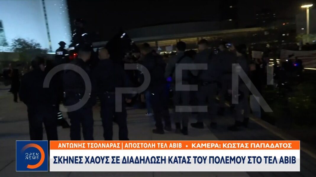 Εκατοντάδες πολίτες συγκεντρώθηκαν χθες βράδυ στο Τελ Αβίβ για να διαδηλώσουν κατά του πολέμου, εκφράζοντας την αντίθεσή τους στην κλιμάκωση της βίας. Καθώς οι διαδηλώσεις κορυφώνονταν, οι αστυνομικές δυνάμεις προχώρησαν σε επιχείρηση απομάκρυνσης των διαδηλωτών, με την κατάσταση να γίνεται έντονα τεταμένη.