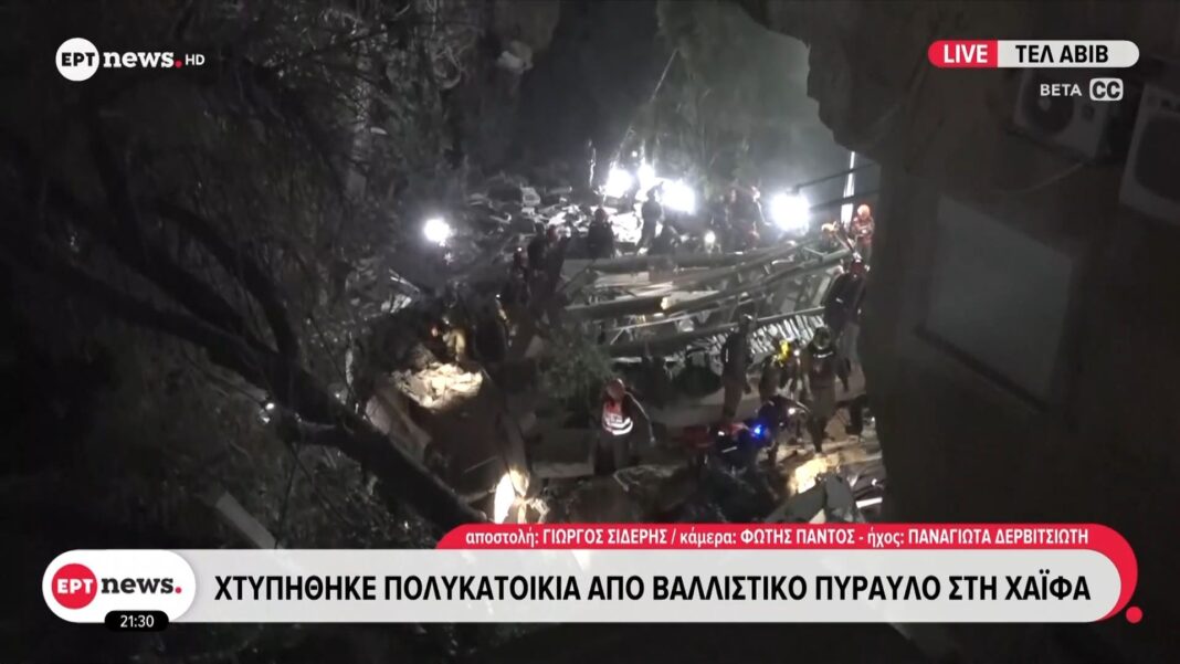 Στη Χάιφα, πολυκατοικία δέχτηκε επίθεση από βαλλιστικό πύραυλο, προκαλώντας σοβαρές ζημιές και πανικό στους κατοίκους. Οι αρχές αναφέρουν ότι υπάρχουν τουλάχιστον δύο θύματα και πολλοί τραυματίες, ενώ οι προσπάθειες διάσωσης συνεχίζονται.