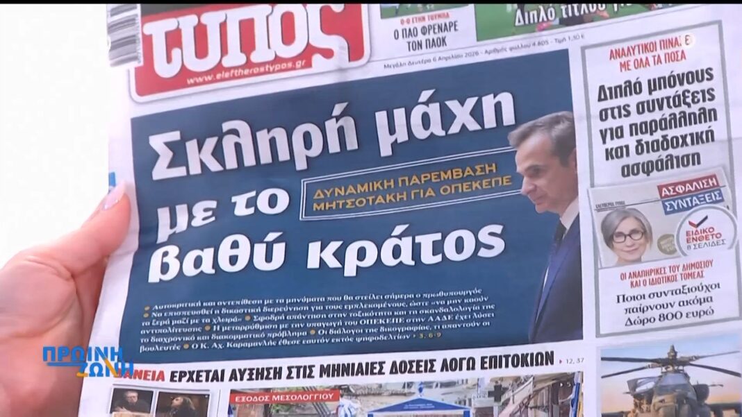 Πρωτοσέλιδα εφημερίδων: Τι γράφουν σήμερα Δευτέρα 6 Απριλίου 2026