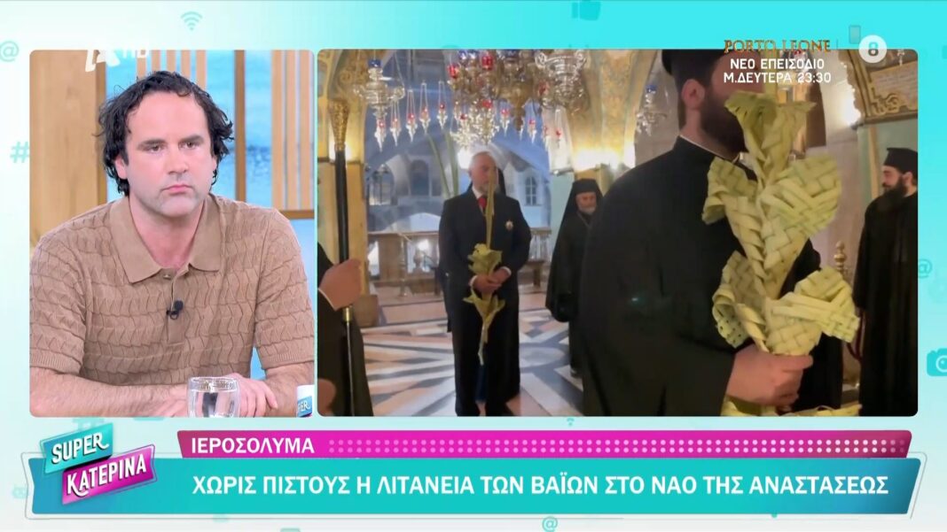 Η λιτανεία των Βαΐων στο ναό της Αναστάσεως φέτος πραγματοποιήθηκε χωρίς την παρουσία πιστών, λόγω των περιορισμών που επιβάλλονται από τις υγειονομικές συνθήκες. Ο Ανδρέας Καραγιάννης, καλεσμένος στην εκπομπή Super Κατερίνα, αναφέρθηκε στις ιδιαίτερες συνθήκες που συνόδευσαν τη γιορτή και τη σπουδαιότητά της για την τοπική κοινότητα.