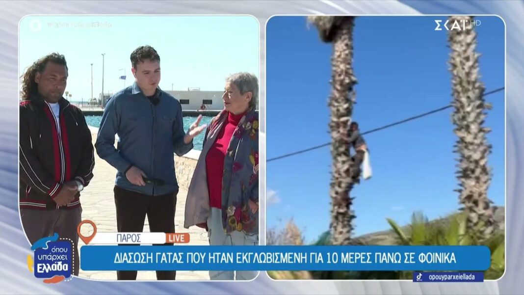 Πάρος: Διάσωση γάτας που ήταν εγκλωβισμένη πάνω σε φοίνικα για 10 μέρες!