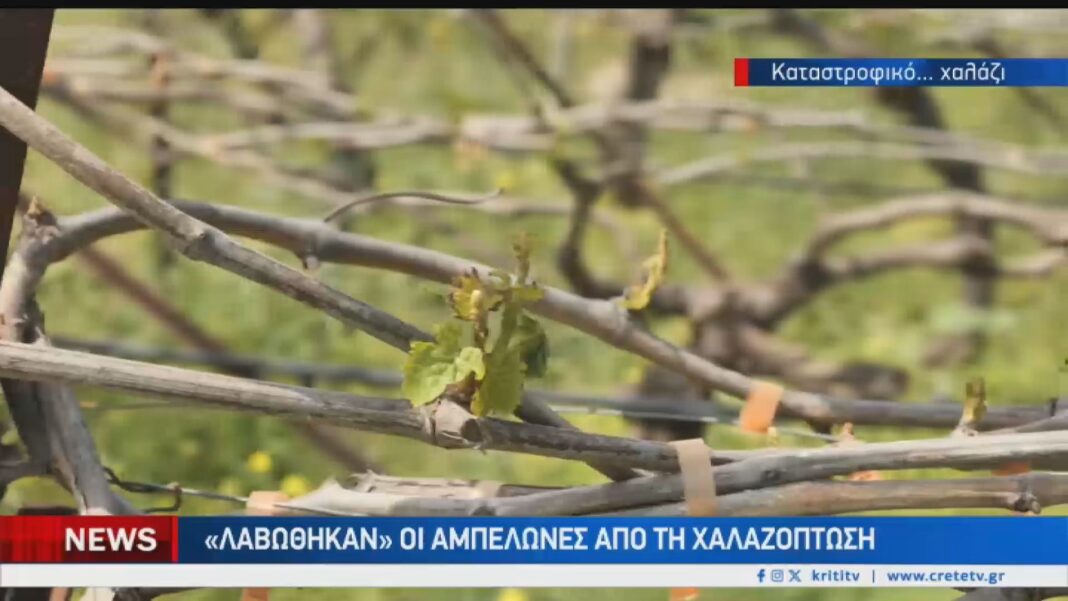 Χαλαζόπτωση και άνεμοι προκάλεσαν πρωτοφανείς ζημιές σε αμπέλια Κρήτης, βυθίζοντας σε απόγνωση παραγωγούς από Αρχάνες, Πεζά και Μεσαρά.