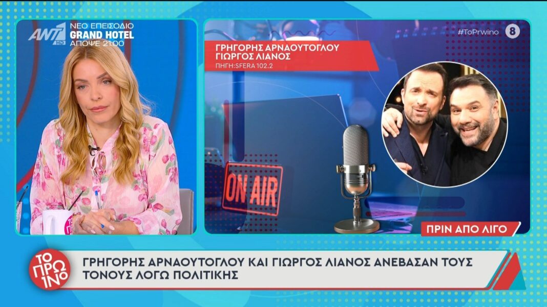 Στην εκπομπή του Πρωινού, οι Γιώργος Αρναούτογλου και Γιώργος Λιανός βρέθηκαν σε έντονη αντιπαράθεση σχετικά με πολιτικά θέματα που απασχολούν την κοινωνία. Οι δύο παρουσιαστές εξέφρασαν διαφορετικές απόψεις, με τον διάλογο να χαρακτηρίζεται από πάθος και ενθουσιασμό.