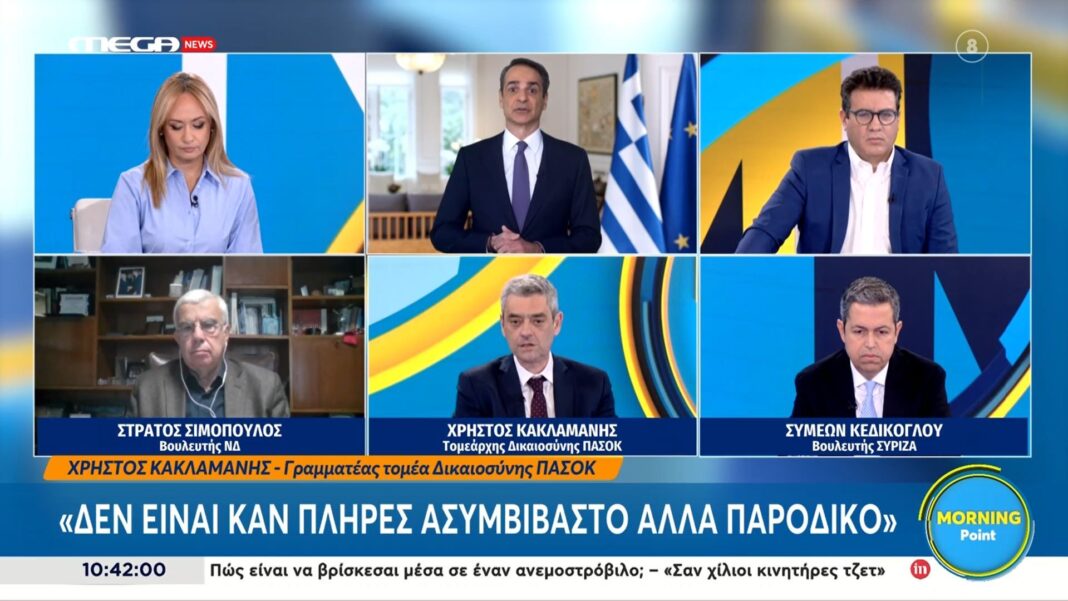 Στη συζήτηση που διεξήχθη στο «Morning Point», οι βουλευτές Στράτος Σιμόπουλος, Χρήστος Κακλαμάνης και Συμεών Κεδίκογλου αντάλλαξαν απόψεις σχετικά με την πρόταση του Πρωθυπουργού Κυριάκου Μητσοτάκη για το ασυμβίβαστο Υπουργού-βουλευτή. Ο Χρήστος Κακλαμάνης τόνισε ότι η κατάσταση δεν συνιστά πλήρες ασυμβίβαστο, αλλά είναι μάλλον παροδική.