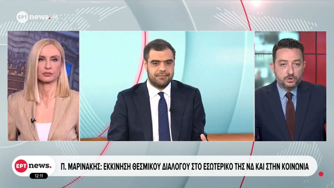 Ο Π. Μαρινάκης ανακοίνωσε την έναρξη ενός θεσμικού διαλόγου που στοχεύει στην ενίσχυση της εσωτερικής συνοχής της Νέας Δημοκρατίας και στη βελτίωση των σχέσεων με την κοινωνία. Η πρωτοβουλία αυτή αποσκοπεί στη συμμετοχή των πολιτών και των κομματικών μελών σε μια ανοιχτή συζήτηση για τις προκλήσεις που αντιμετωπίζει η χώρα.