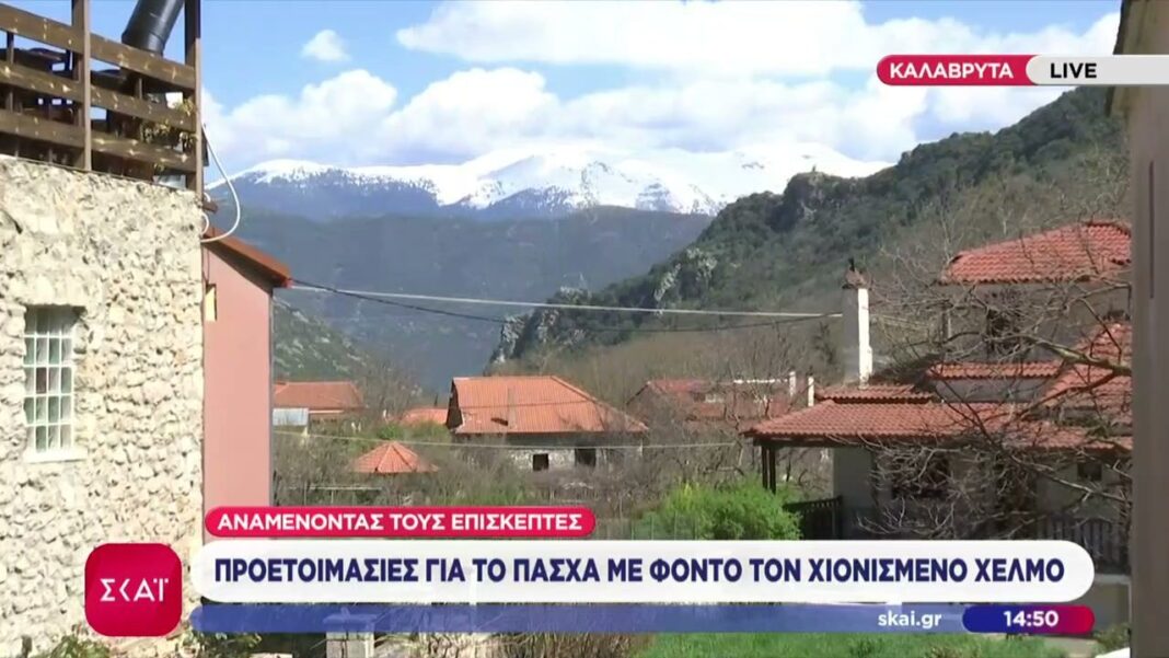 Οι προετοιμασίες για τις εορταστικές εκδηλώσεις του Πάσχα βρίσκονται σε πλήρη εξέλιξη στα Καλάβρυτα, με φόντο το επιβλητικό τοπίο του χιονισμένου Χελμού. Οι κάτοικοι και οι επισκέπτες προγραμματίζουν παραδοσιακές δραστηριότητες, ενώ η ατμόσφαιρα γεμίζει με προσμονή για τις εορτές.