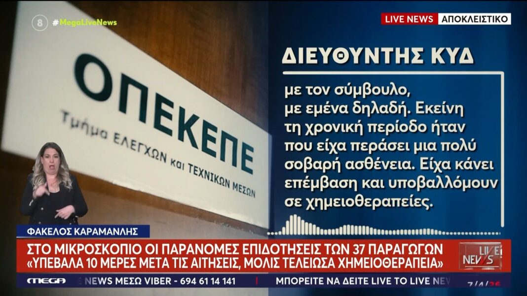Ο διευθυντής του ΚΥΔ αναφέρθηκε στην επιδότηση ύψους 240.000€, η οποία προήλθε μετά από παρέμβαση του Κώστα Καραμανλή. Στην εκπομπή Live News, εξήγησε ότι υπέβαλε τις αιτήσεις μόλις 10 μέρες μετά την ολοκλήρωση της χημειοθεραπείας του, επισημαίνοντας τις δυσκολίες που αντιμετώπισε.