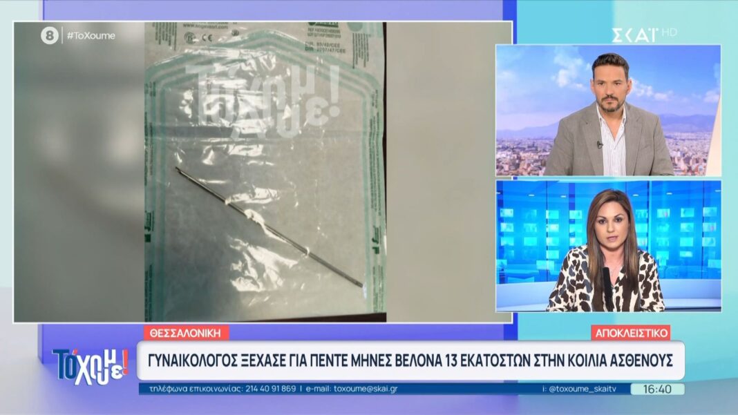 Μια σοβαρή ιατρική παραμέληση ήρθε στο φως όταν ασθενής παρουσίασε έντονο πόνο στην κοιλιά, αποκαλύπτοντας ότι είχε παραμείνει βελόνα 13 εκατοστών για πέντε μήνες. Η γυναίκα, που μίλησε αποκλειστικά στην εκπομπή «Το ‘Χουμε!», περιγράφει την αγωνία της και την αναστάτωση που προκλήθηκε από την αμέλεια του γυναικολόγου.