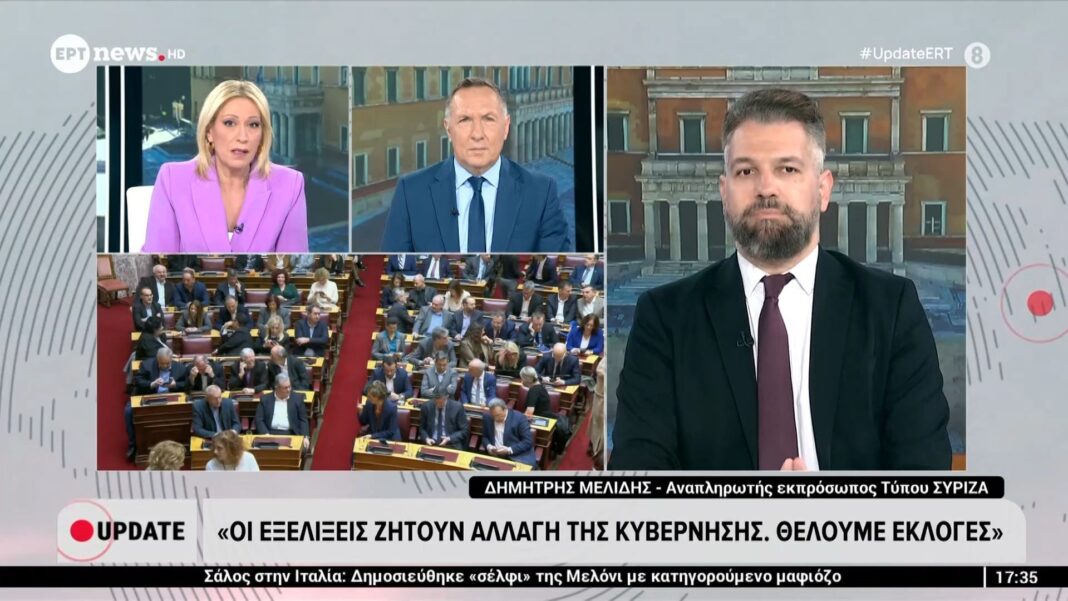 Ο Δημήτρης Μελίδης, Αναπληρωτής εκπρόσωπος Τύπου του ΣΥΡΙΖΑ, αναλύει τις πρόσφατες πολιτικές εξελίξεις στη χώρα, τονίζοντας την ανάγκη για αλλαγή κυβέρνησης. Σε δηλώσεις του, υπογραμμίζει ότι οι συνθήκες απαιτούν την άμεση διεξαγωγή εκλογών, ώστε οι πολίτες να έχουν τη δυνατότητα να εκφράσουν τη θέλησή τους.
