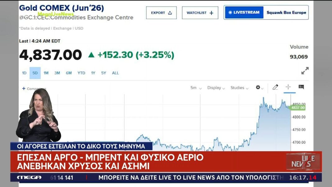 Αντίθετα, οι τιμές του χρυσού και του ασημιού παρουσίασαν άνοδο, καθώς οι επενδυτές στρέφονται σε ασφαλή καταφύγια εν μέσω αυξανόμενης αβεβαιότητας. Η τάση αυτή αντικατοπτρίζει την αναζήτηση σταθερότητας και την προστασία από τις αναταραχές στην αγορά.
