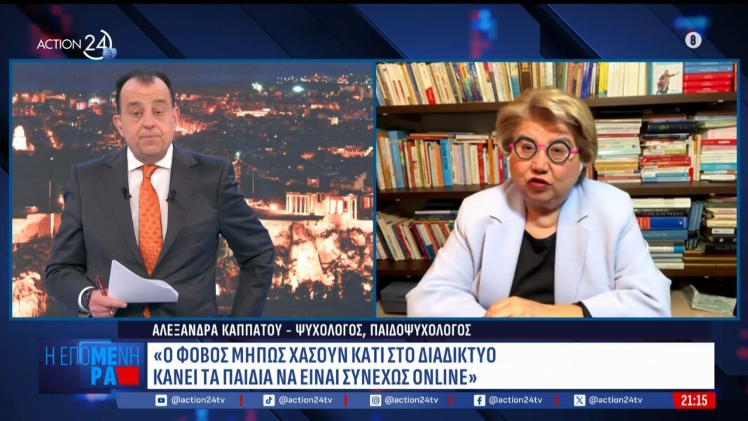 Ο παιδοψυχολόγος Α. Καππάτου αναλύει την επίδραση του διαδικτύου στους εφήβους και τον φόβο τους να χάσουν σημαντικές πληροφορίες ή επικοινωνίες. Αυτός ο φόβος οδηγεί τους νέους να παραμένουν συνεχώς online, επηρεάζοντας τη ψυχική τους υγεία και τις σχέσεις τους.