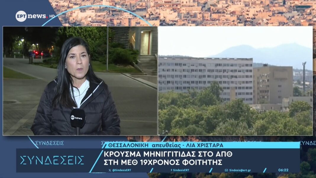 Σοβαρό κρούσμα μηνιγγίτιδας εκδηλώθηκε σε 19χρονο φοιτητή του Αριστοτελείου Πανεπιστημίου Θεσσαλονίκης, ο οποίος διακομίστηκε άμεσα στη Μονάδα Εντατικής Θεραπείας. Οι ιατροί παρακολουθούν στενά την κατάσταση της υγείας του και έχουν λάβει όλα τα απαραίτητα μέτρα για την προστασία των υπόλοιπων φοιτητών.