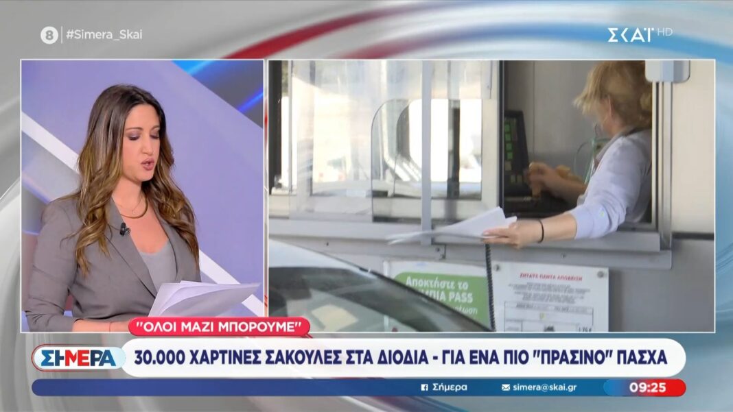 Στην προσπάθεια προώθησης της οικολογικής συνείδησης, διανέμονται 30.000 χάρτινες σακούλες στα διόδια της χώρας, με σκοπό την ενθάρρυνση της χρήσης φιλικών προς το περιβάλλον υλικών κατά την περίοδο του Πάσχα. Η πρωτοβουλία αυτή ενσωματώνει τη δράση «Όλοι μαζί μπορούμε», που προάγει την αλληλεγγύη και την προστασία του πλανήτη.