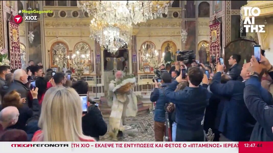 Ο πατέρας Αντώνιος εντυπωσίασε με ενέργεια και πίστη, συγκεντρώνοντας πλήθος πιστών στη Χίο για το μοναδικό σάλτο από την ωραία πύλη του ναού.