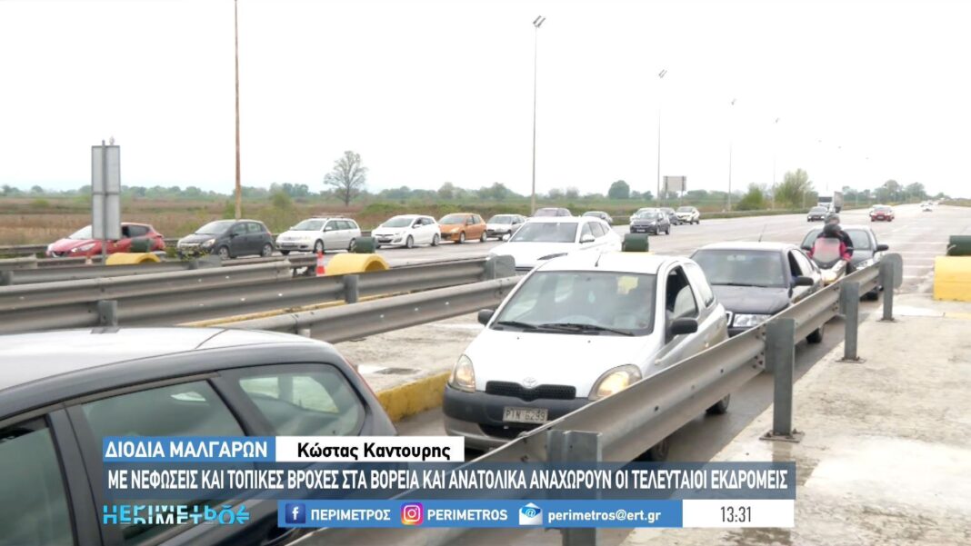 Αυξημένη είναι η κίνηση στα διόδια Μαλγάρων, καθώς οι τελευταίοι εκδρομείς του Πάσχα αναχωρούν για τους προορισμούς τους. Από το μεσημέρι σχηματίζονται μικρές ουρές, χωρίς όμως να παρατηρούνται σοβαρά προβλήματα στην κυκλοφορία.