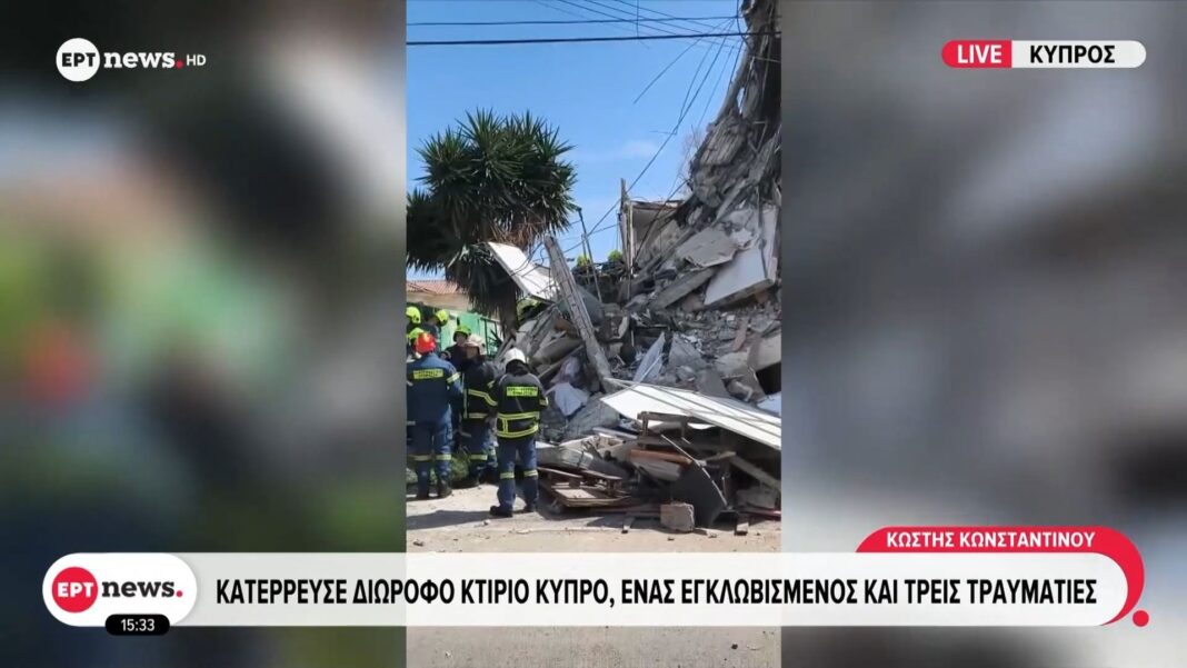 Διώροφο κτίριο κατέρρευσε στην Κύπρο, προκαλώντας αναστάτωση στην τοπική κοινότητα. Οι αρχές έχουν ξεκινήσει επιχείρηση διάσωσης για τον εντοπισμό ενός εγκλωβισμένου ατόμου, ενώ τρεις άλλοι έχουν μεταφερθεί στο νοσοκομείο με τραύματα.