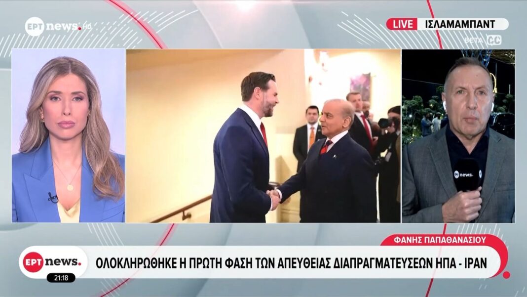 Ολοκληρώθηκαν οι απευθείας διαπραγματεύσεις μεταξύ ΗΠΑ και Ιράν στην πρωτεύουσα του Πακιστάν, με στόχο την αποκατάσταση των διπλωματικών σχέσεων και την εξεύρεση λύσεων σε κρίσιμα ζητήματα. Οι συνομιλίες εξελίχθηκαν σε θετικό κλίμα, με τις δύο πλευρές να αναγνωρίζουν τη σημασία της συνέχισης του διαλόγου.