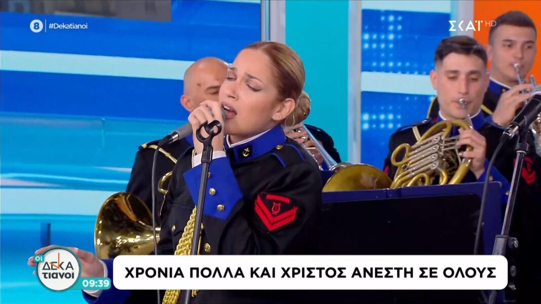 Η Μπάντα του Πολεμικού Ναυτικού μας ταξιδεύει σε αναμνήσεις με την ερμηνεία ενός κλασικού κομματιού της Μαρινέλλας. Η μουσική αυτή επιλογή συνδυάζει την παράδοση με τη στρατιωτική πειθαρχία, προσφέροντας ένα μοναδικό θέαμα που τιμά την ελληνική μουσική κληρονομιά.