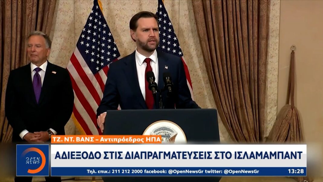 Μετά από 21 ώρες εντατικών διαπραγματεύσεων στο Ισλαμαμπάντ, οι προσπάθειες για ειρηνική λύση στον πόλεμο στη Μέση Ανατολή κατέληξαν σε αδιέξοδο. Ο αντιπρόεδρος των ΗΠΑ ανακοίνωσε την απόρριψη των αμερικανικών προτάσεων από το Ιράν, επιστρέφοντας στην Ουάσινγκτον χωρίς κανένα αποτέλεσμα.