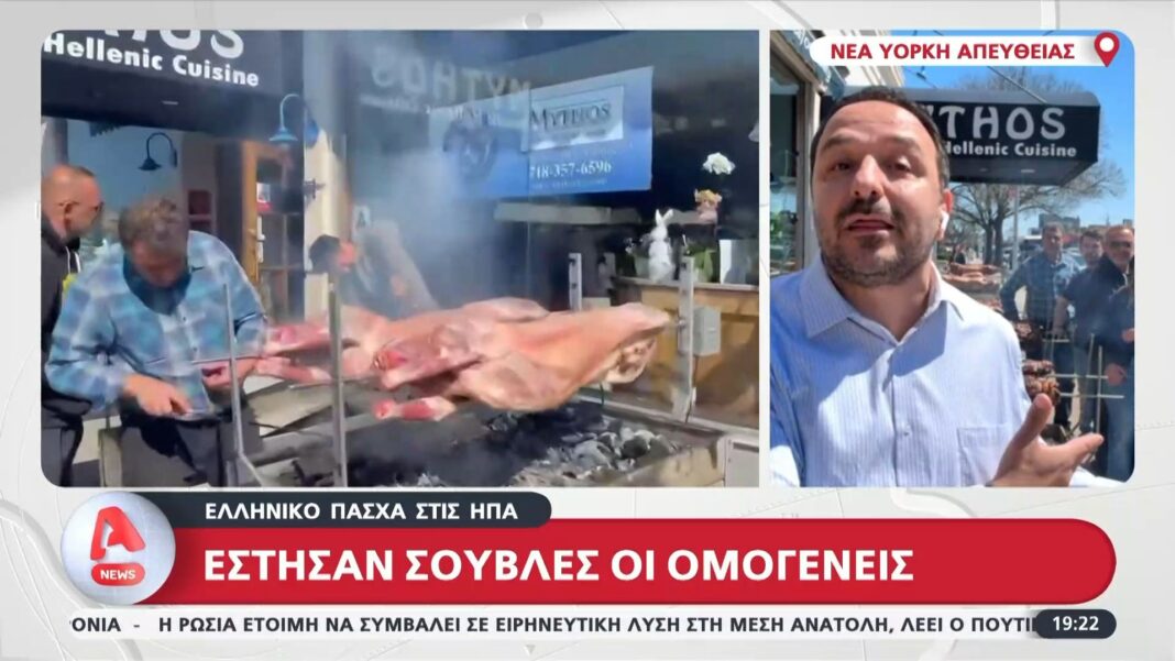 Οι Έλληνες ομογενείς στη Νέα Υόρκη γιόρτασαν την παράδοση του Πάσχα με ζωντάνια και ενθουσιασμό, στήνοντας σούβλες σε διάφορες περιοχές της πόλης. Η ατμόσφαιρα γέμισε με την χαρακτηριστική τσίκνα, που έκανε τους περαστικούς να νιώσουν την ελληνική παράδοση, ακόμη και χιλιάδες χιλιόμετρα μακριά από τη χώρα.