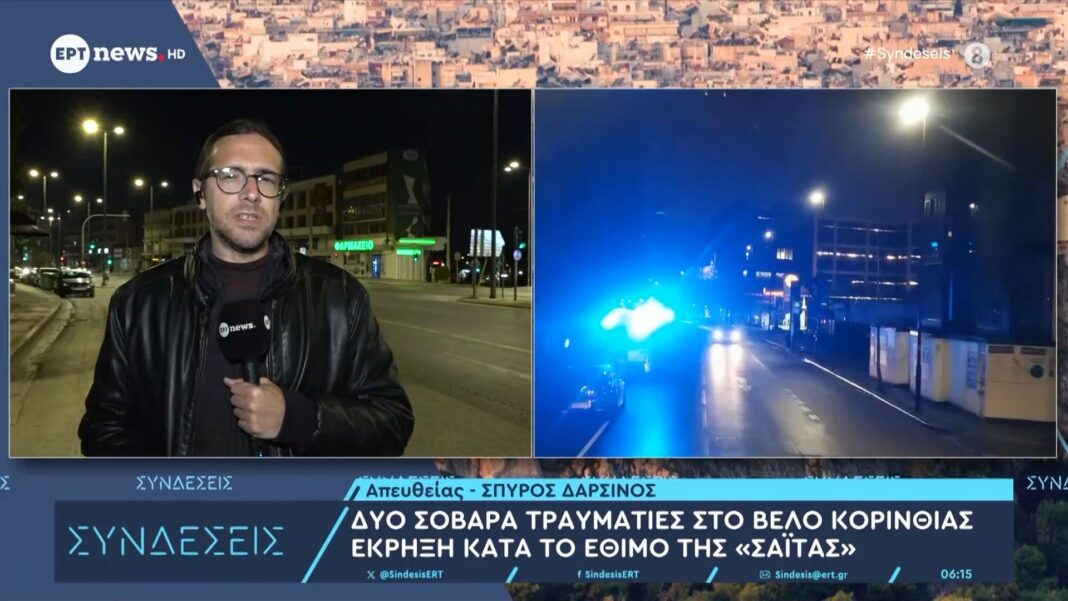Δύο άτομα τραυματίστηκαν σοβαρά σε περιστατικό που συνέβη κατά τη διάρκεια του εθίμου της «σαΐτας» στο Βέλο Κορινθίας. Σύμφωνα με πληροφορίες, η έκρηξη σημειώθηκε όταν οι συμμετέχοντες επιχείρησαν να εκτοξεύσουν βελάκια, με αποτέλεσμα να προκληθούν σοβαροί τραυματισμοί.