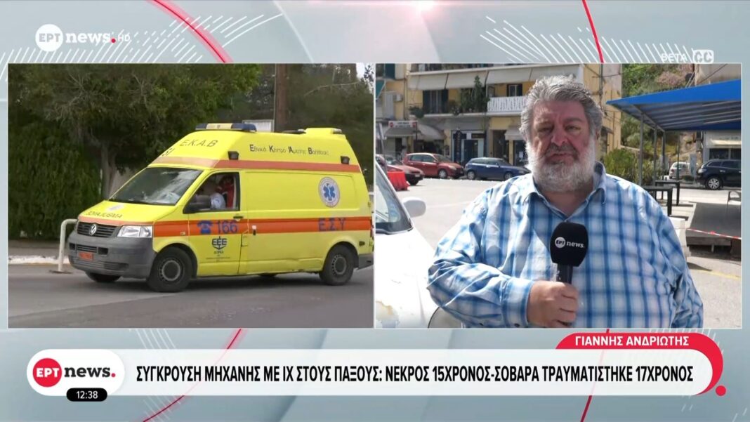 Σοβαρό τροχαίο ατύχημα σημειώθηκε στους Παξούς, όταν μηχανή συγκρούστηκε με ΙΧ αυτοκίνητο. Δυστυχώς, ένας 15χρονος έχασε τη ζωή του, ενώ ένας 17χρονος τραυματίστηκε σοβαρά και μεταφέρθηκε σε νοσοκομείο για ιατρική περίθαλψη.